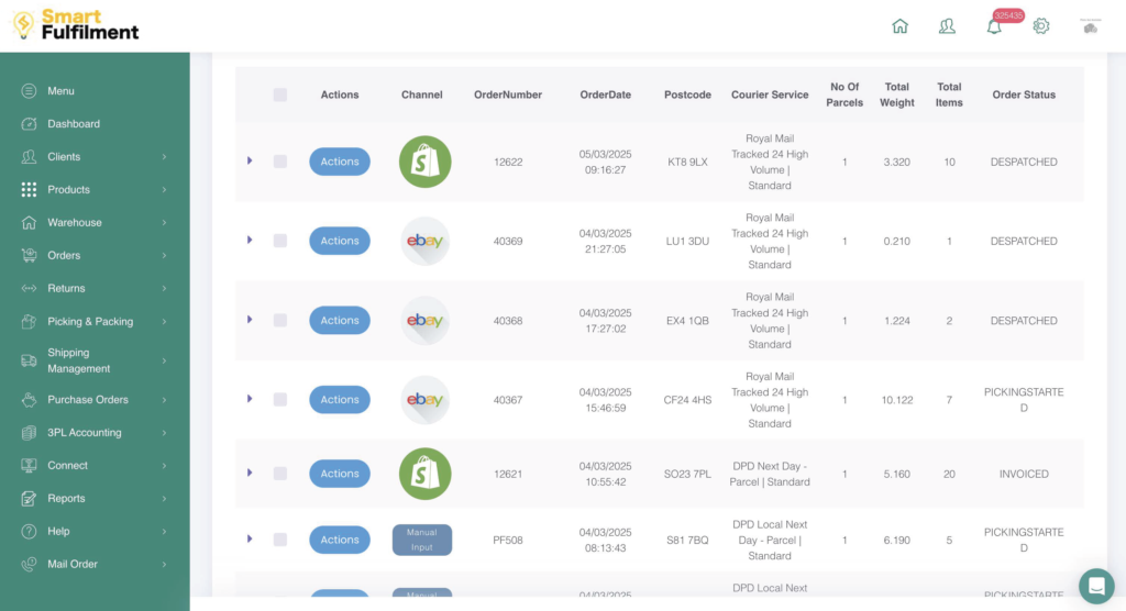 Work smarter, not harder, with a wide range of ready-to-use WMS integrations. Using the integrated solution to simplify the most complex aspects of e-commerce fulfilment, warehousing, and logistics. There are over 60 online shopping platform integrations including Shopify, Ebay, Amazon and tonnes more. We can then pull through all of your customer orders and send shipping confirmation/tracking details right back to the platform.